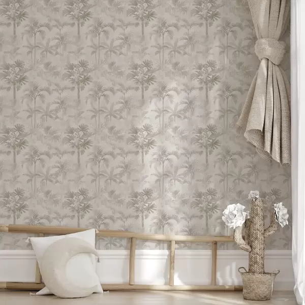 Ταπετσαρία Ομιχλώδης φοινικόδασος σε ζεστούς μπεζ τόνους Nr. a00881