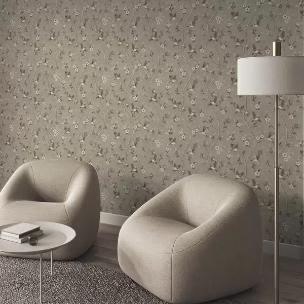 Ταπετσαρία Πουλιά και ανθισμένα κλαδιά σε ζεστούς σέπια τόνους Nr. a00882