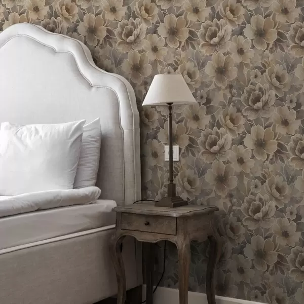 Ταπετσαρία Ζωγραφικά μπεζ λουλούδια σε καπνιστό αφηρημένο φόντο Nr. a00884