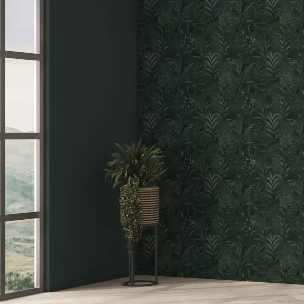 Ταπετσαρία Σκούρο πράσινο φόντο με διαφανή κλαδιά φύλλων Nr. a00888