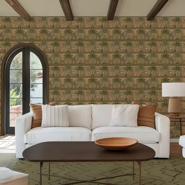 Ταπετσαρία Διακοσμητικά ζώα της σαβάνας ανάμεσα σε φοίνικες και μπορντούρες Nr. a00898