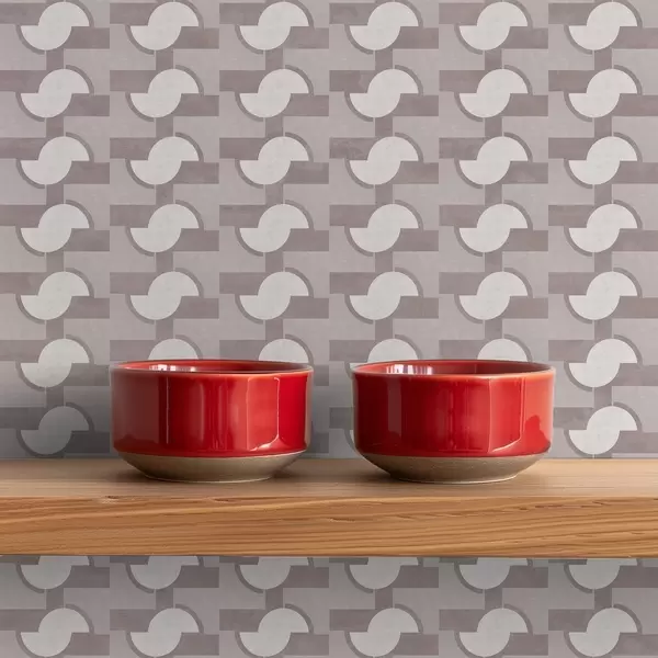 Ταπετσαρία Μωβ αρθρωτά πλακίδια με συνδεδεμένα ημικύκλια Nr. a00915