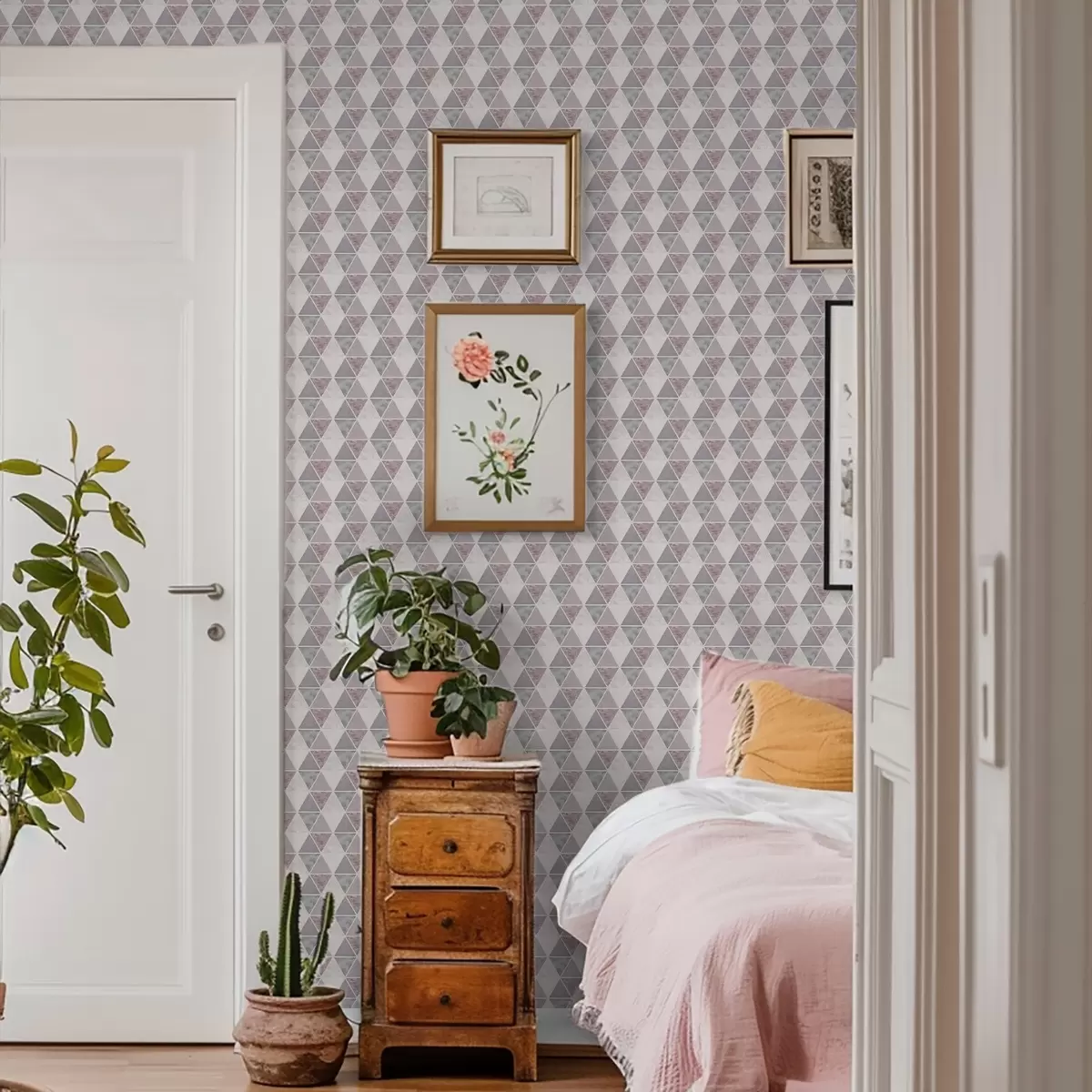 Ταπετσαρία Απαλά τρίγωνα σε γκρι-ροζ και πούδρες αποχρώσεις Nr. a00918