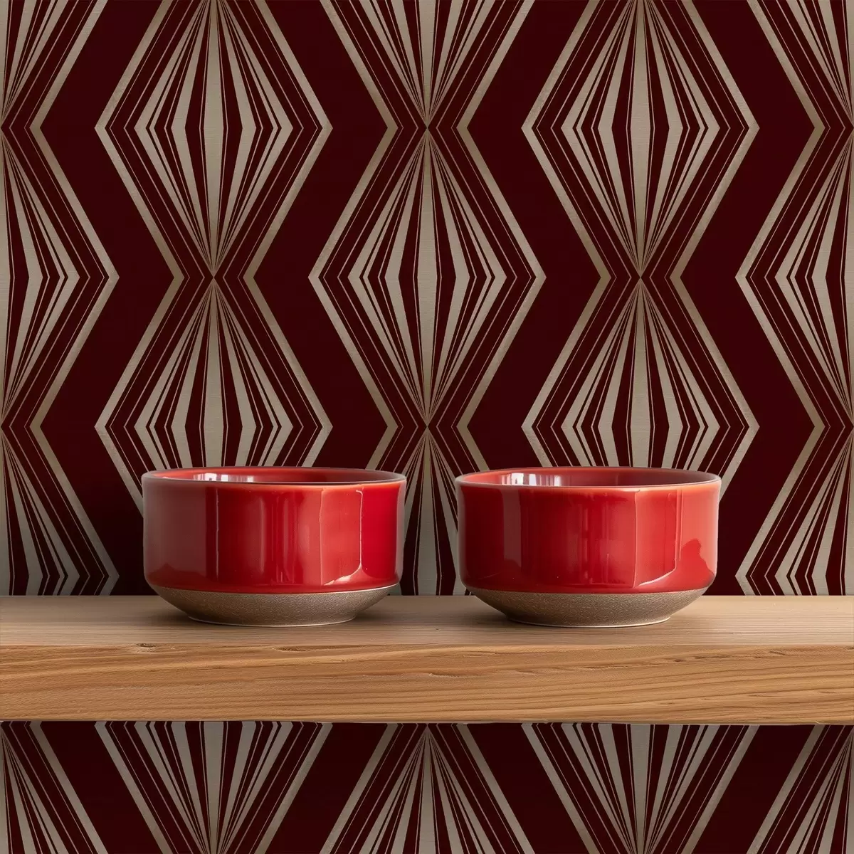 Ταπετσαρία Διαμαντένιο γεωμετρικό μοτίβο σε φόντο καφέ κρασιού Nr. a00925v1