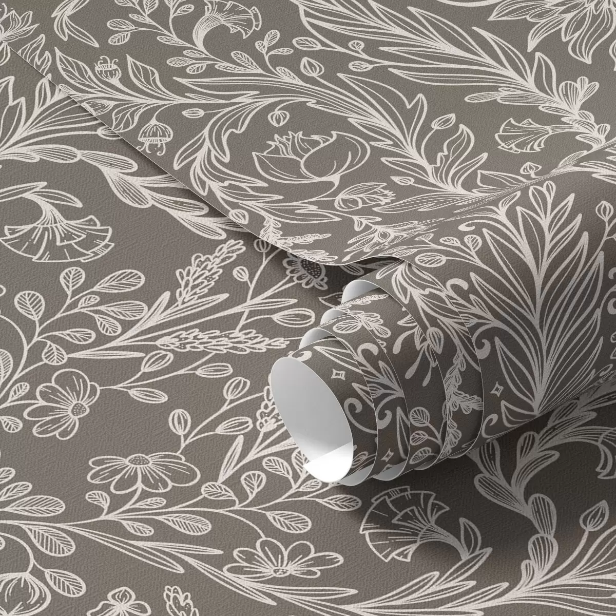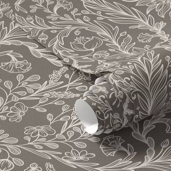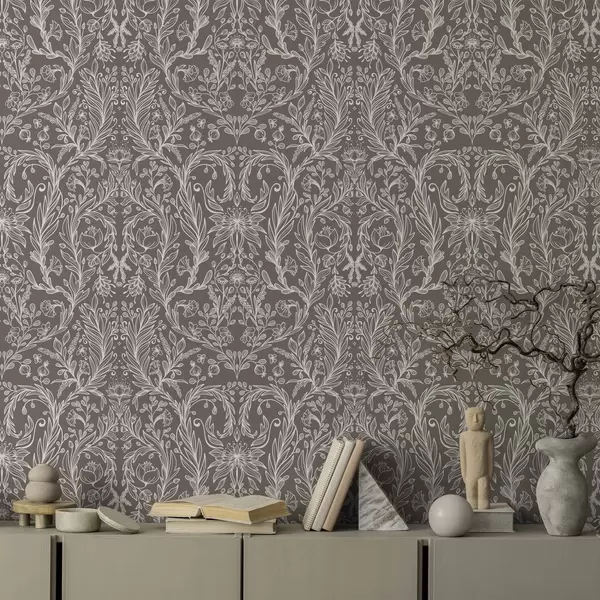 Ταπετσαρία Μονόχρωμο βοτανικό μοτίβο σε ζεστό καφέ χρώμα Nr. a00929v2