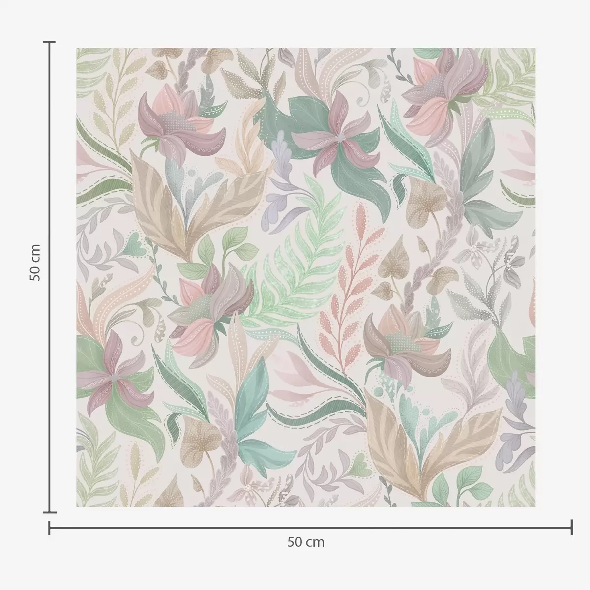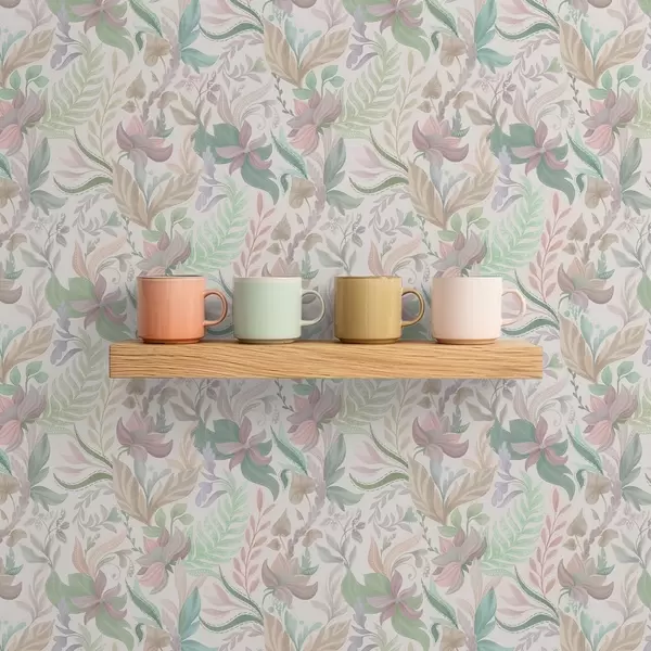 Ταπετσαρία Λεπτά παστέλ λουλούδια και φύλλα σε ανοιχτόχρωμο φόντο Nr. a00931