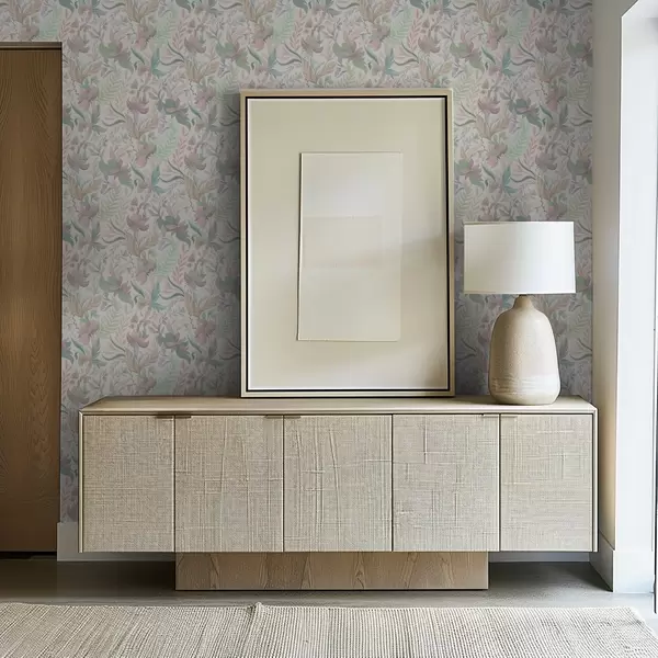 Ταπετσαρία Λεπτά παστέλ λουλούδια και φύλλα σε ανοιχτόχρωμο φόντο a00931