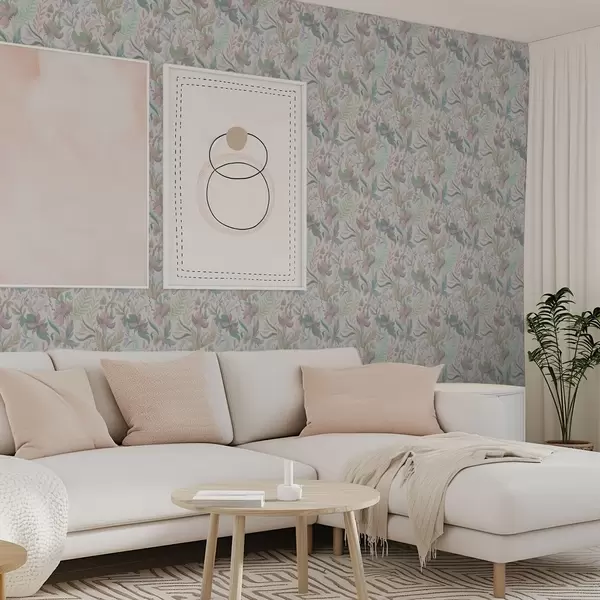Ταπετσαρία Λεπτά παστέλ λουλούδια και φύλλα σε ανοιχτόχρωμο φόντο Nr. a00931