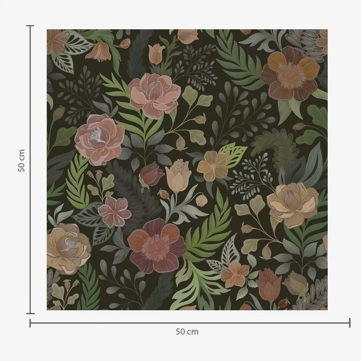 Ταπετσαρία Πλούσια λουλούδια και πράσινο σε βαθύ σκούρο φόντο Nr. a00932