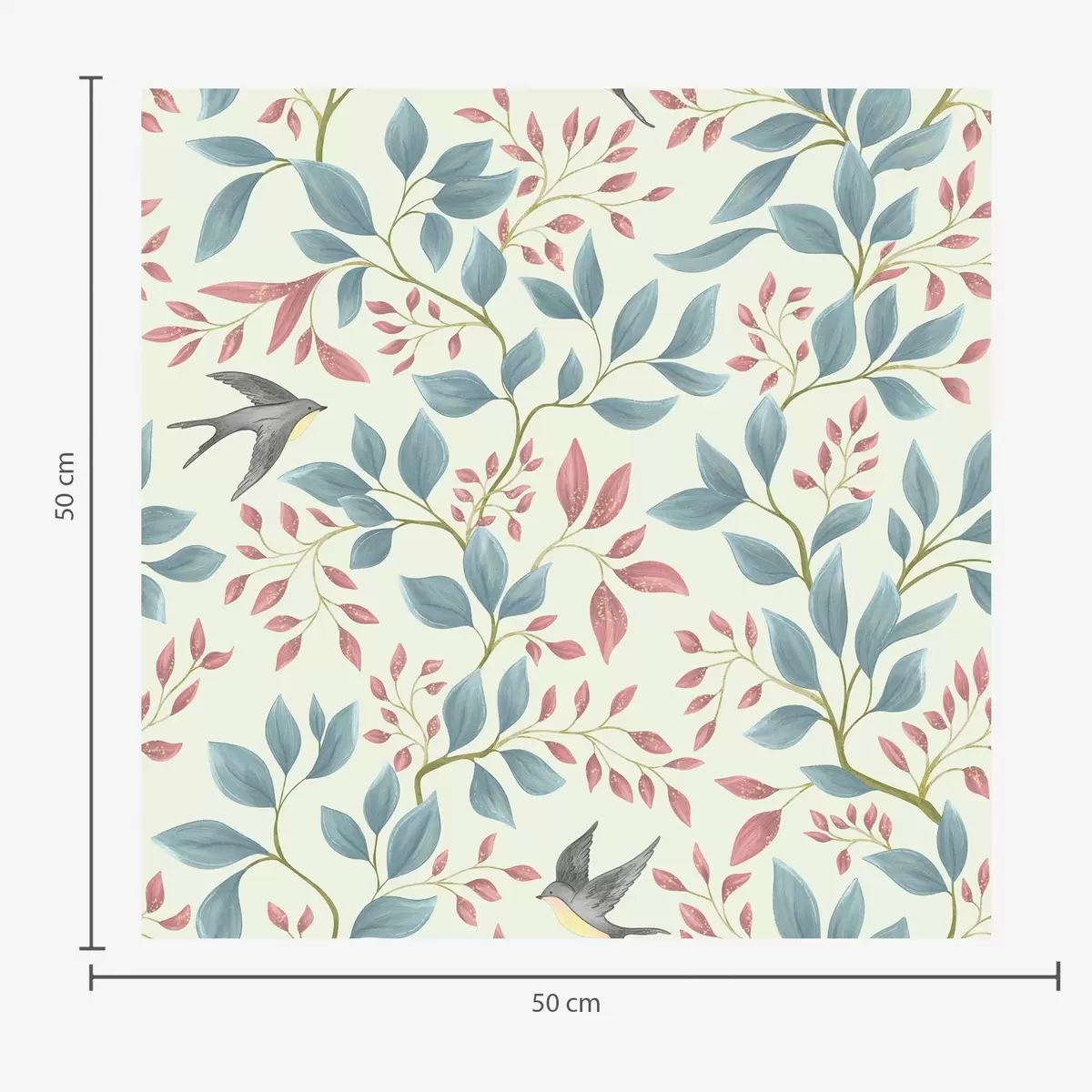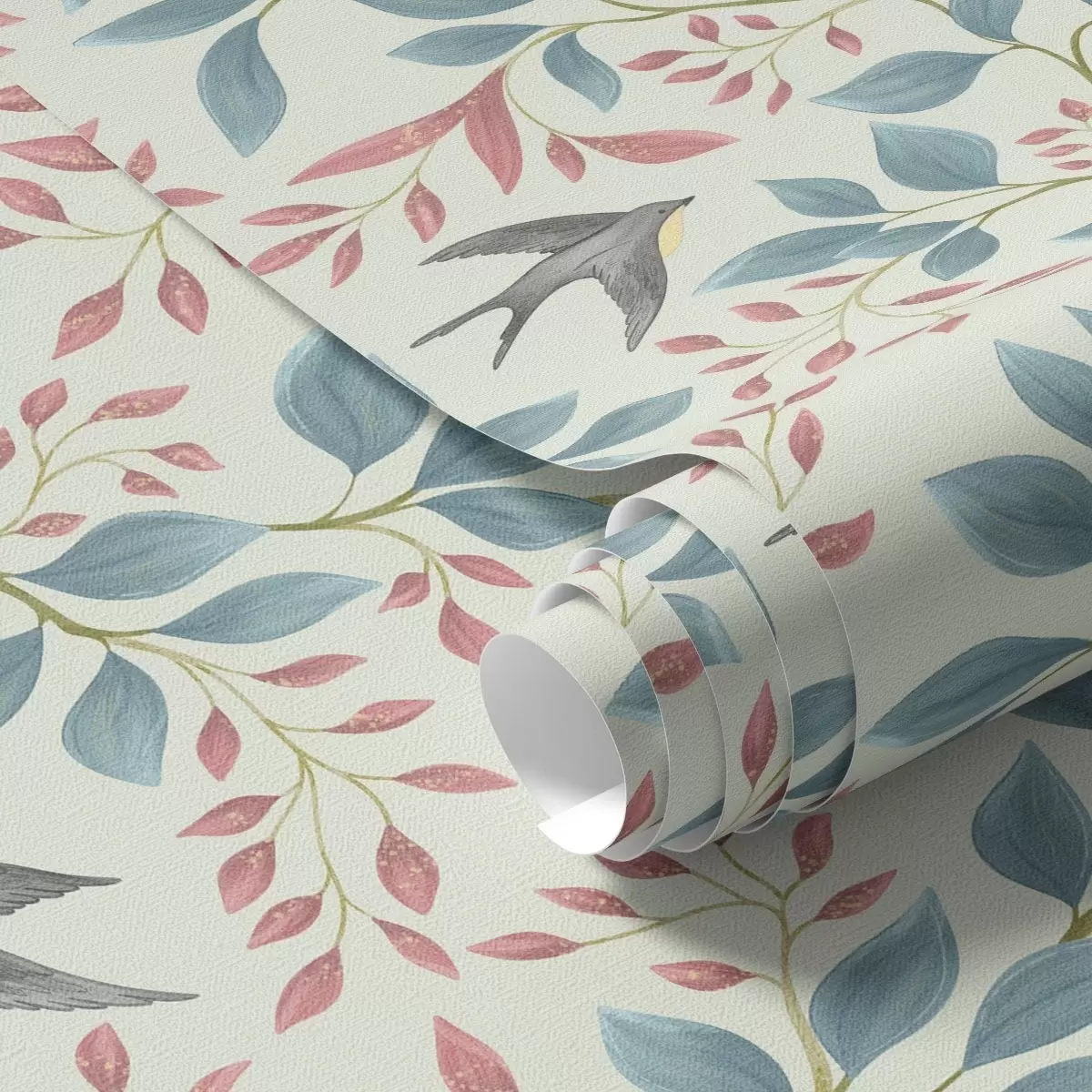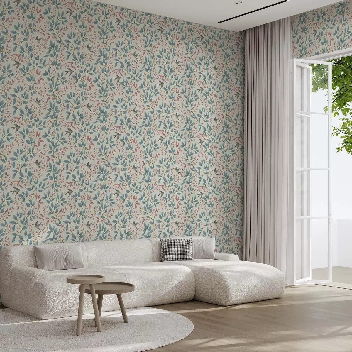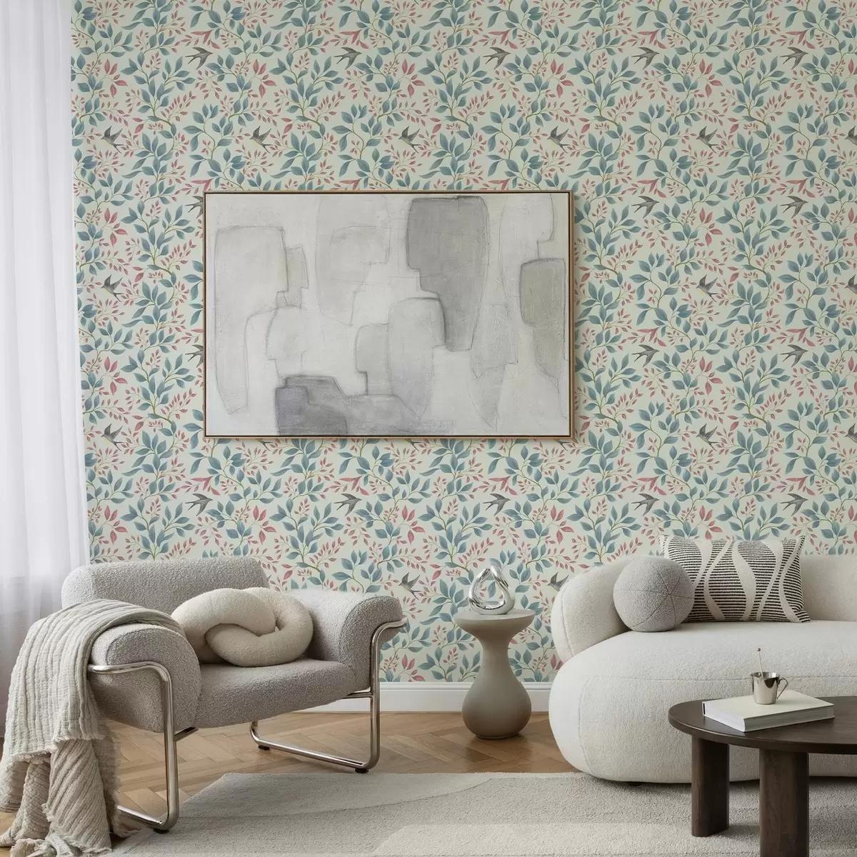 Ταπετσαρία Αέρινα κλαδιά και πουλιά σε φόντο ανοιχτού χρώματος μέντας Nr. a00933v1