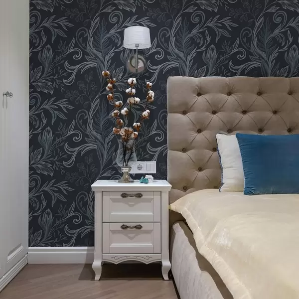 Ταπετσαρία Σκούρα ινδigo κυρτωμένα φύλλα με χειροποίητη σκίαση Nr. a00935