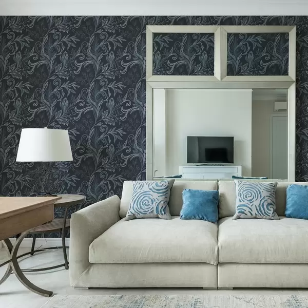 Ταπετσαρία Σκούρα ινδigo κυρτωμένα φύλλα με χειροποίητη σκίαση Nr. a00935