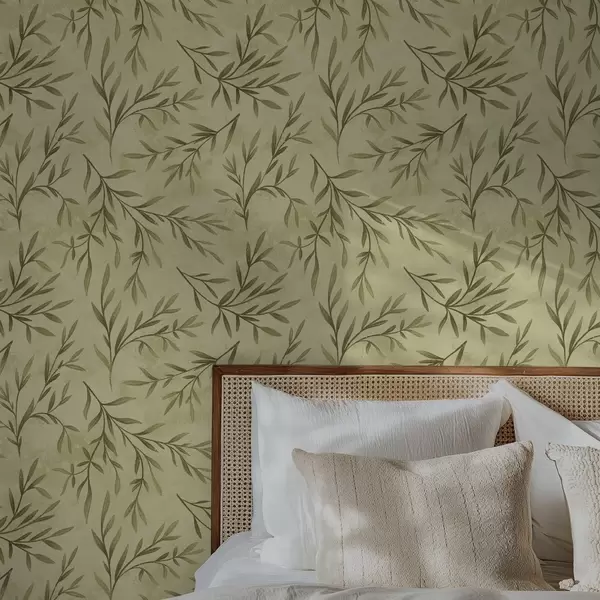 Ταπετσαρία Κλαδιά ελιάς σε απαλό κίτρινο-πράσινο φόντο με υφή Nr. a00936