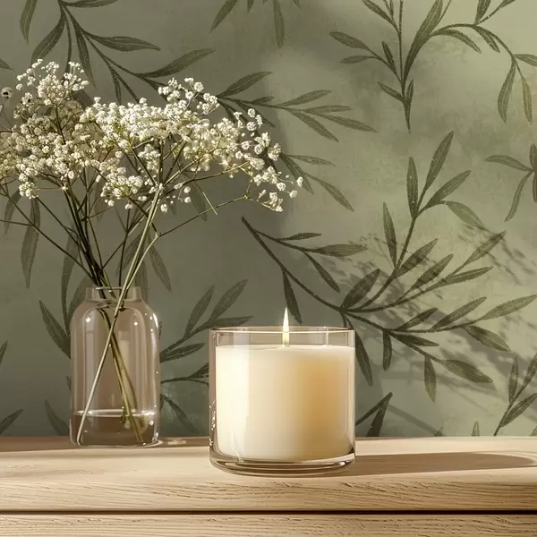 Ταπετσαρία Κλαδιά ελιάς σε απαλό κίτρινο-πράσινο φόντο με υφή Nr. a00936