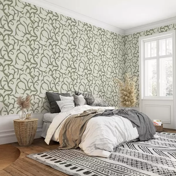 Ταπετσαρία Απαλά πράσινα κωνοφόρα σγουρά σε ανοιχτόχρωμο φόντο Nr. a00938