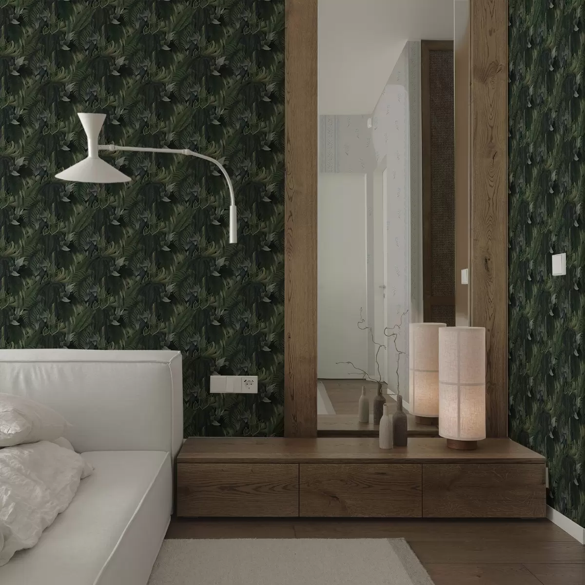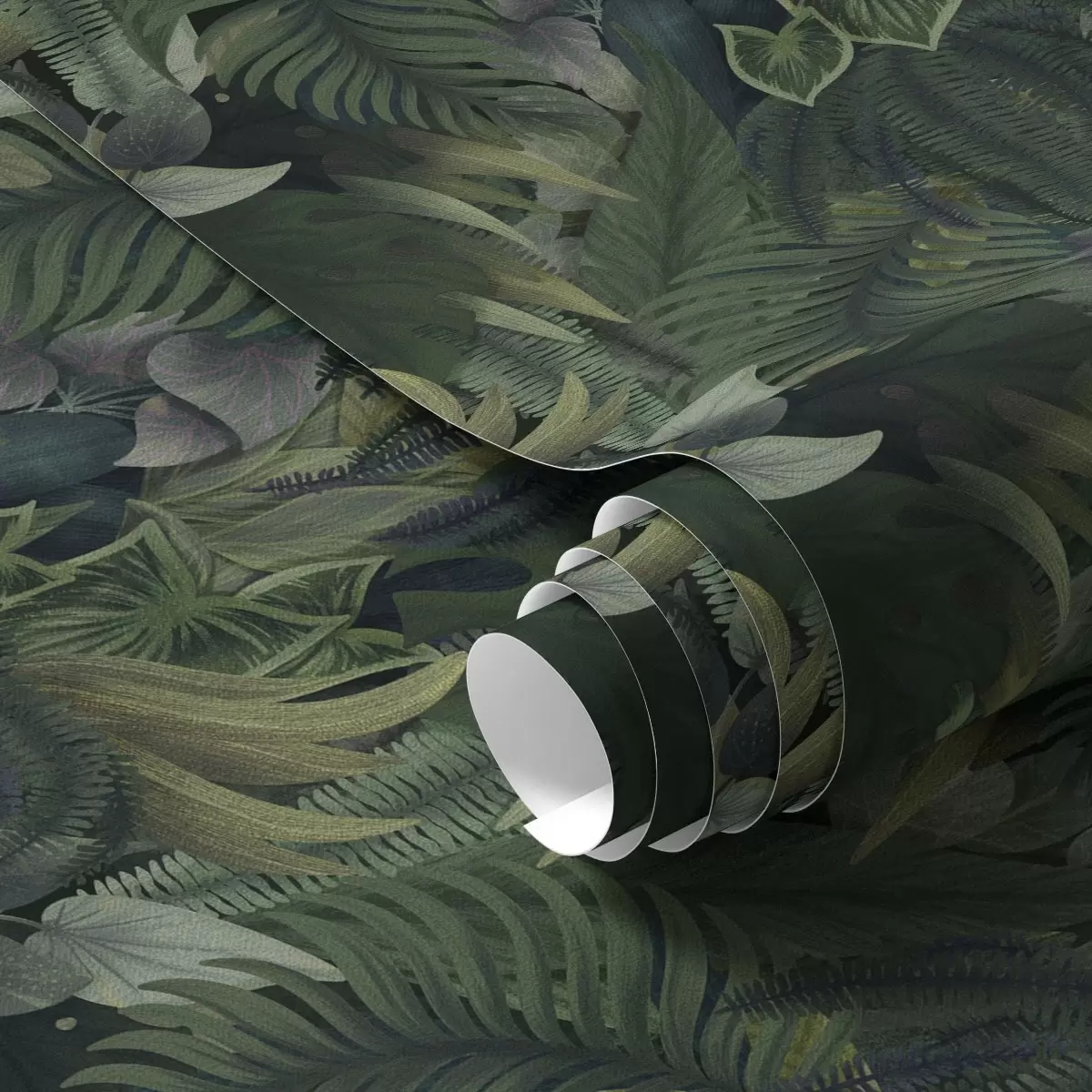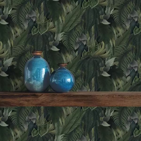 Ταπετσαρία Πυκνό τροπικό φύλλωμα σε βαθιά πράσινα αλσύλλια Nr. a00943
