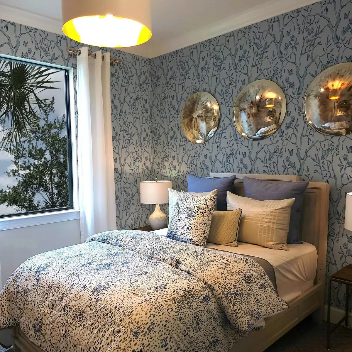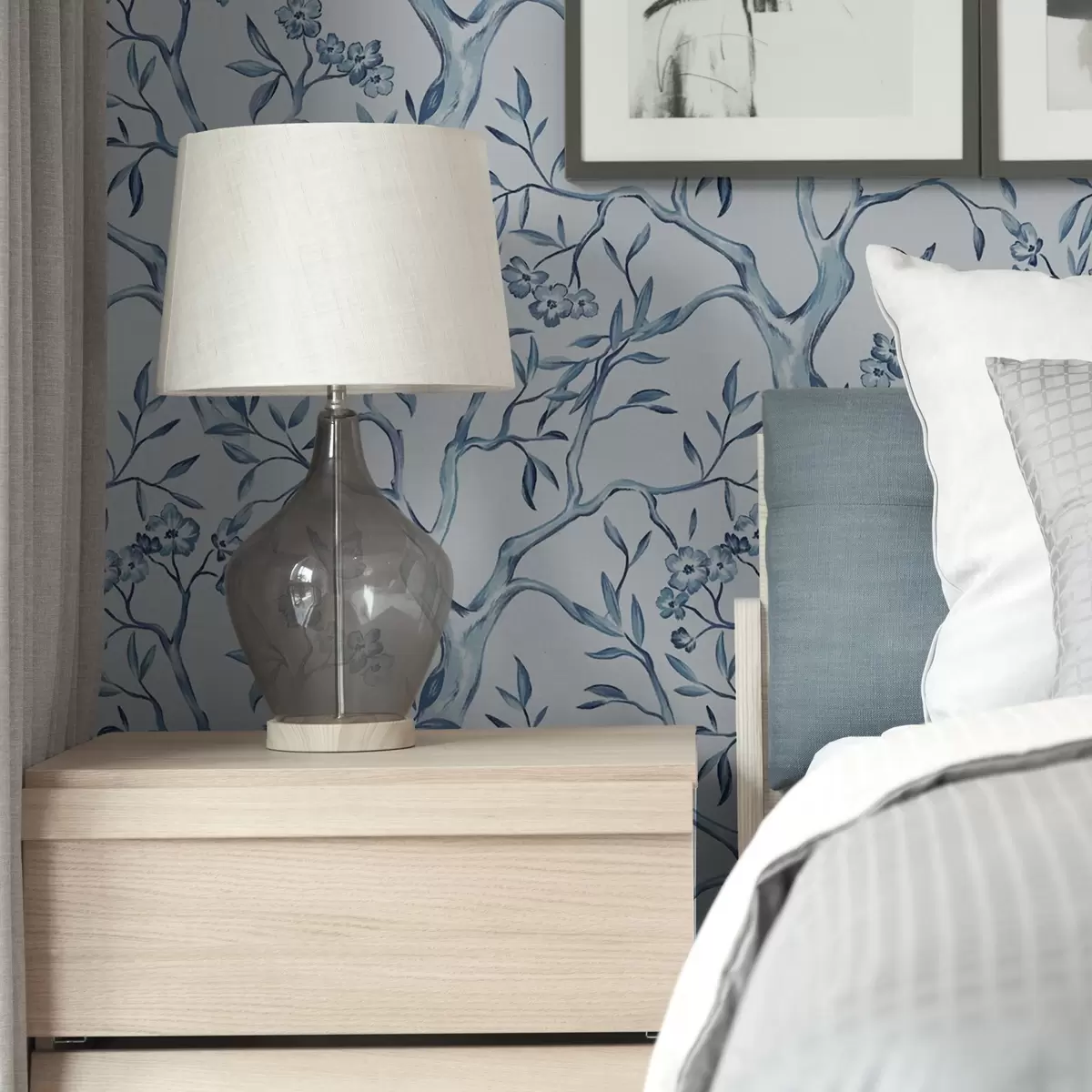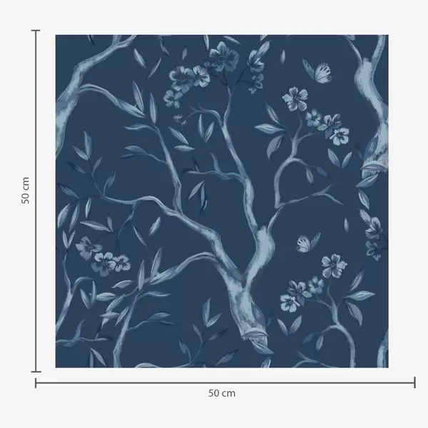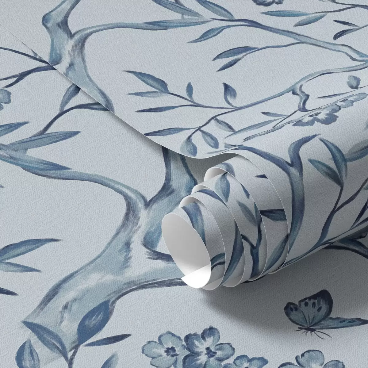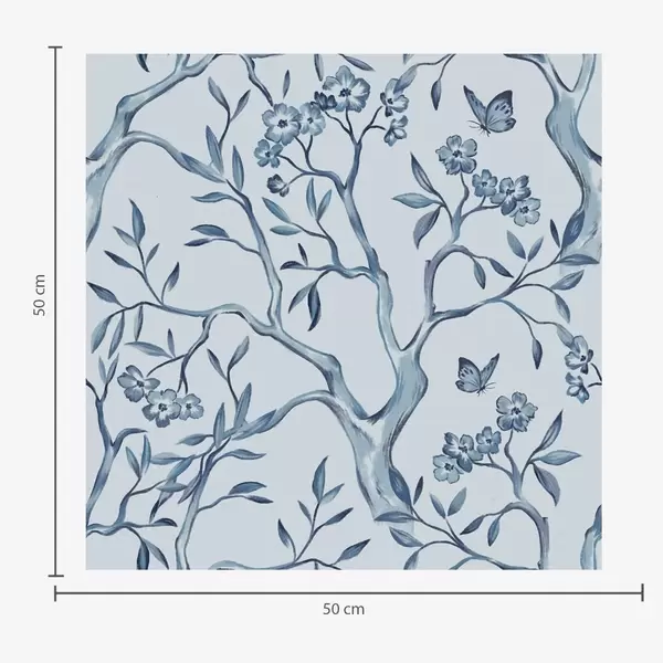 Ταπετσαρία Ακουαρέλα με μπλε κλαδιά με λουλούδια και πεταλούδες σε ανοιχτόχρωμο φόντο Nr. a00951