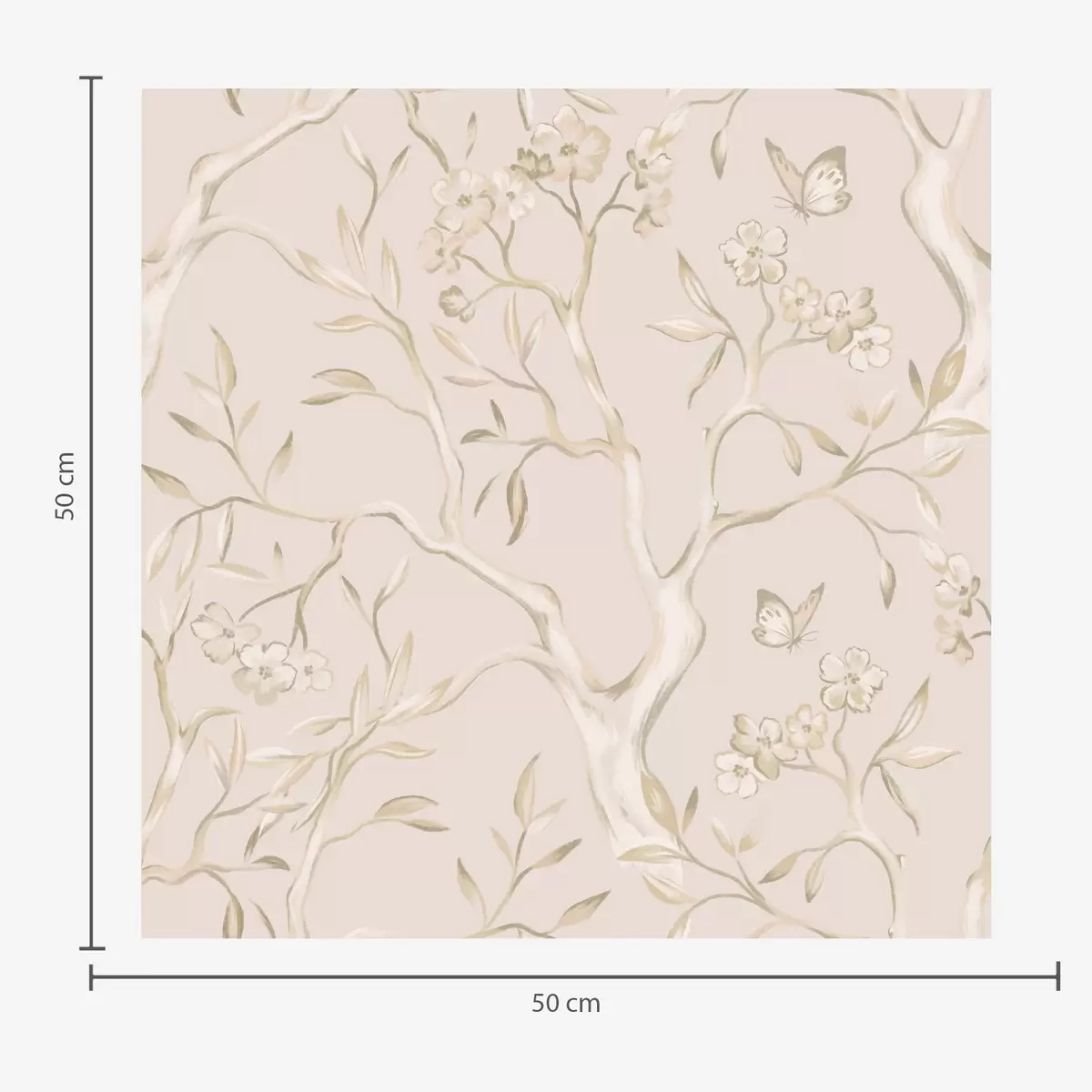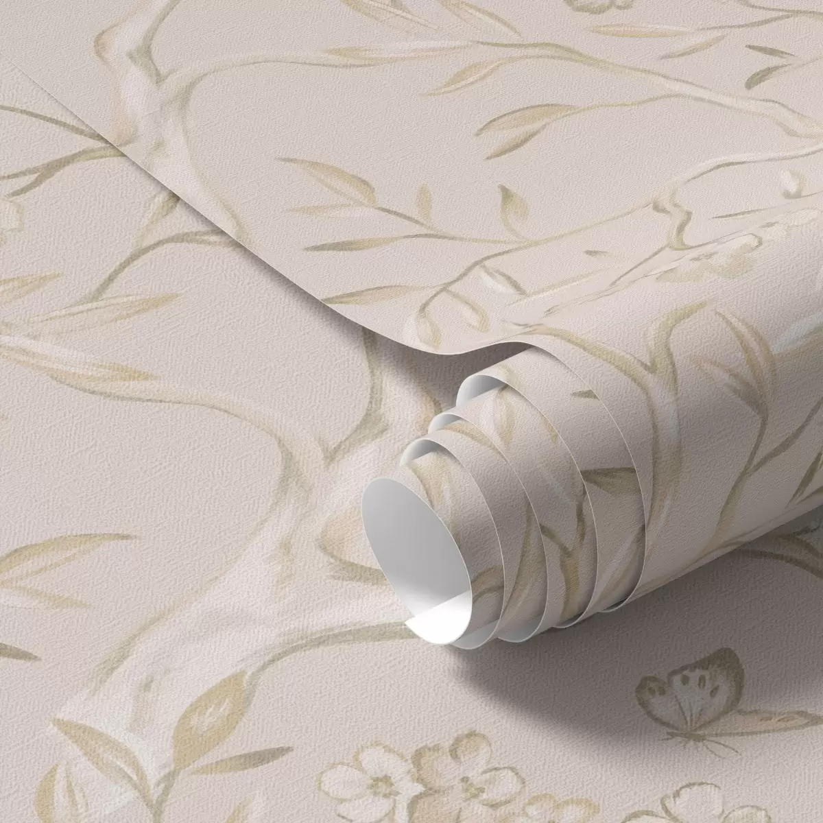Ταπετσαρία Μπεζ ανθισμένα κλαδιά με πεταλούδες σε απαλό φόντο Nr. a00951v2
