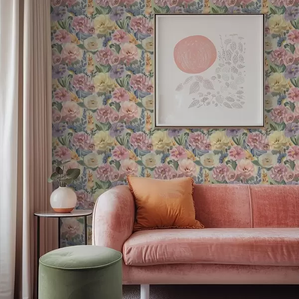 Ταπετσαρία Παστέλ θολά λουλούδια με πινέλο, απαλή παλέτα χρωμάτων Nr. a00954