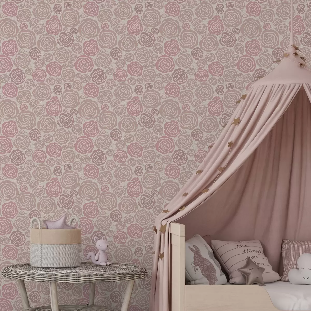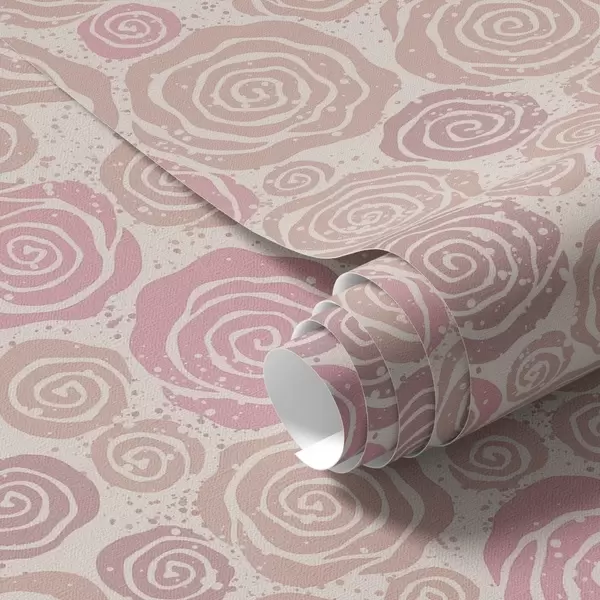 Ταπετσαρία Σπειροειδή ροζ τριαντάφυλλα και πιτσιλιές σε ανοιχτόχρωμο φόντο Nr. a00955