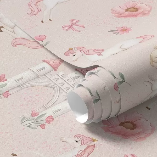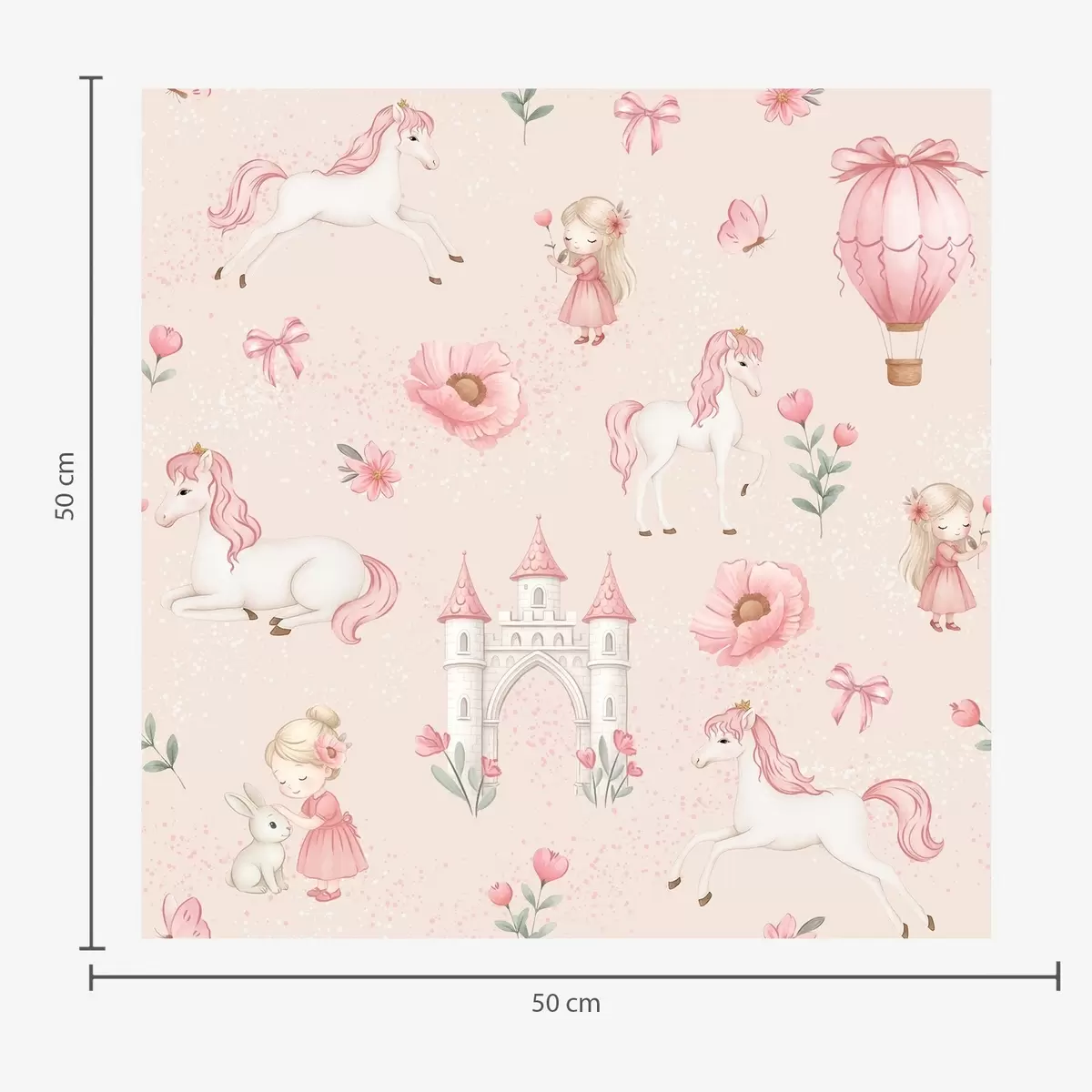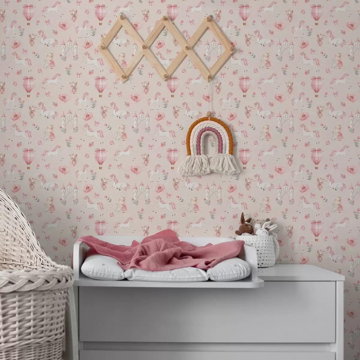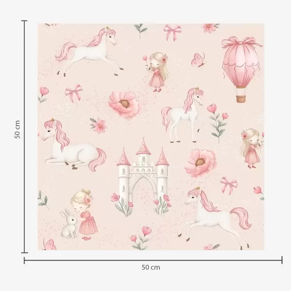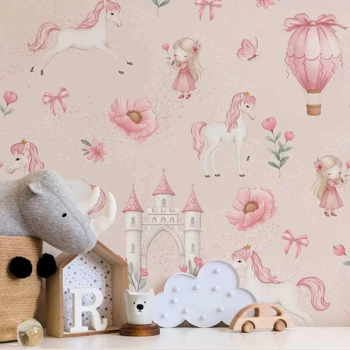 Ταπετσαρία Ροζ μονόκεροι, μικρά κορίτσια και ένα κάστρο σε απαλό φόντο Nr. a00957