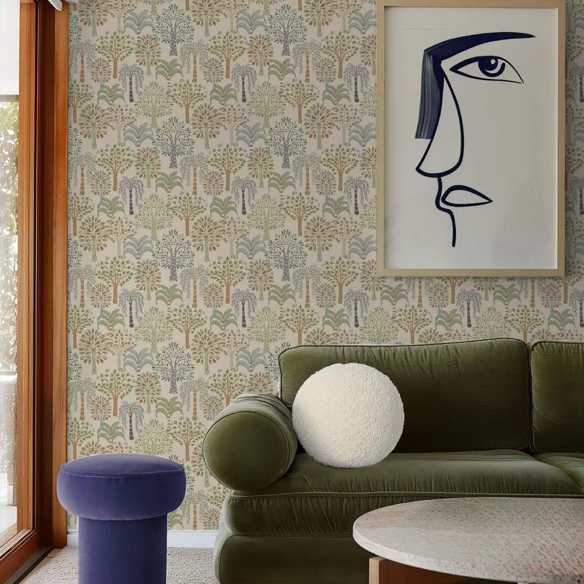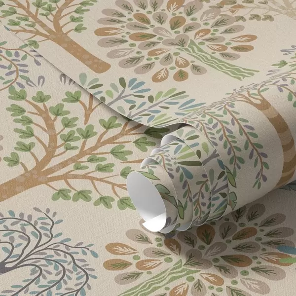 Ταπετσαρία Διακοσμητικά δέντρα σε απαλή φυσική παλέτα Nr. a00960