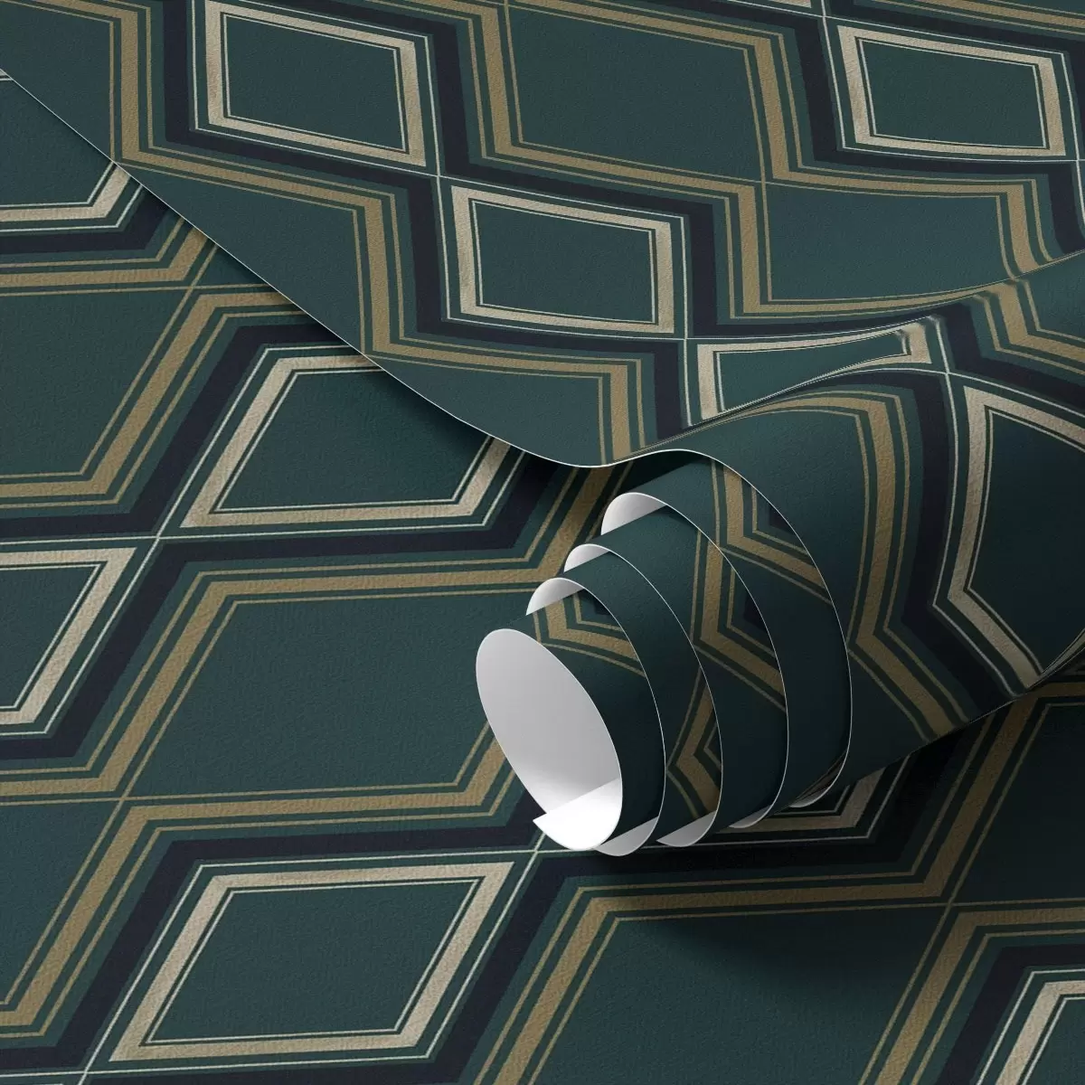 Ταπετσαρία Σκούρο τυρκουάζ-πράσινο φόντο με κάθετες σειρές διαμαντιών Nr. a00976