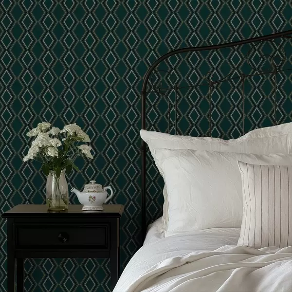 Ταπετσαρία Σκούρο τυρκουάζ-πράσινο φόντο με κάθετες σειρές διαμαντιών Nr. a00976