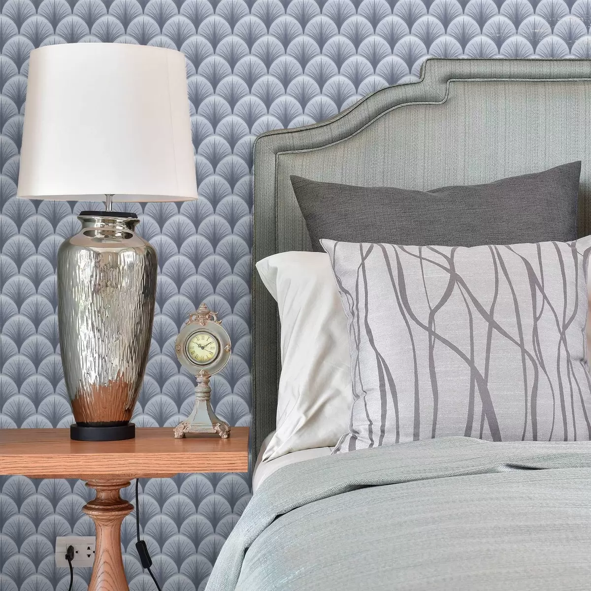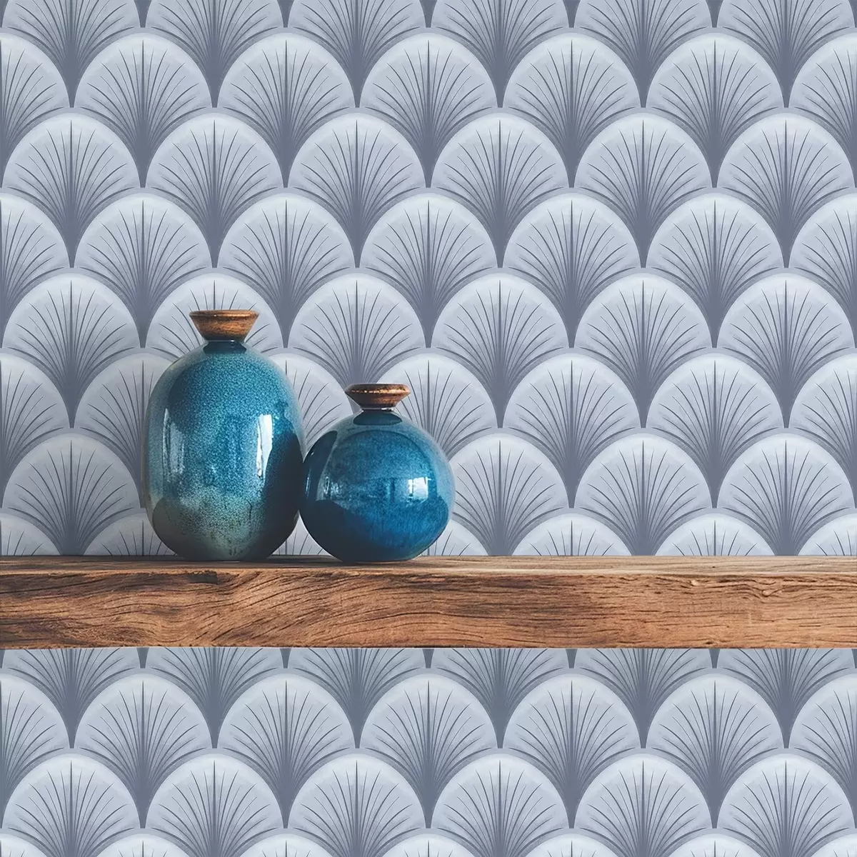 Ταπετσαρία Μπλε αψίδες με ακτίνες σε γαλάζιο φόντο Nr. a00978v1