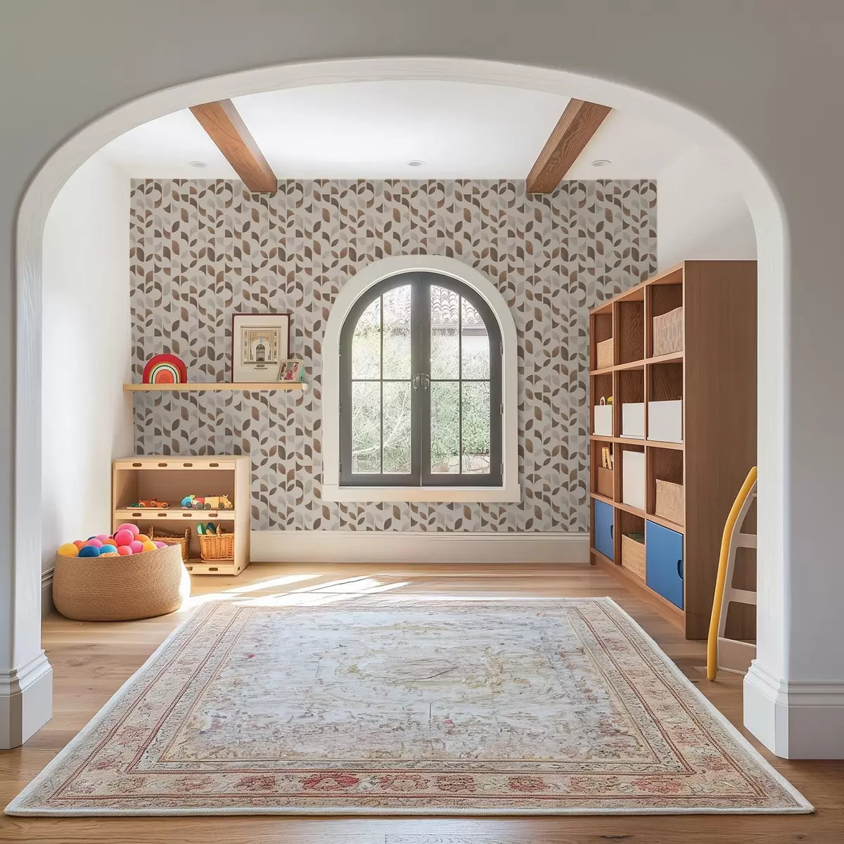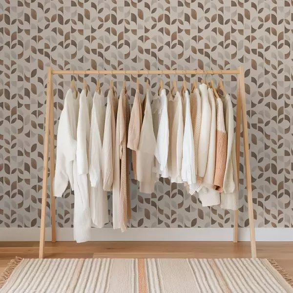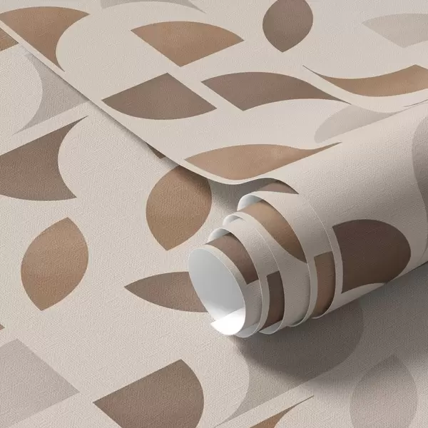 Ταπετσαρία Ρυθμός ημικυκλίων και φύλλων σε ζεστούς καραμελένιους καφέ τόνους Nr. a00986v1