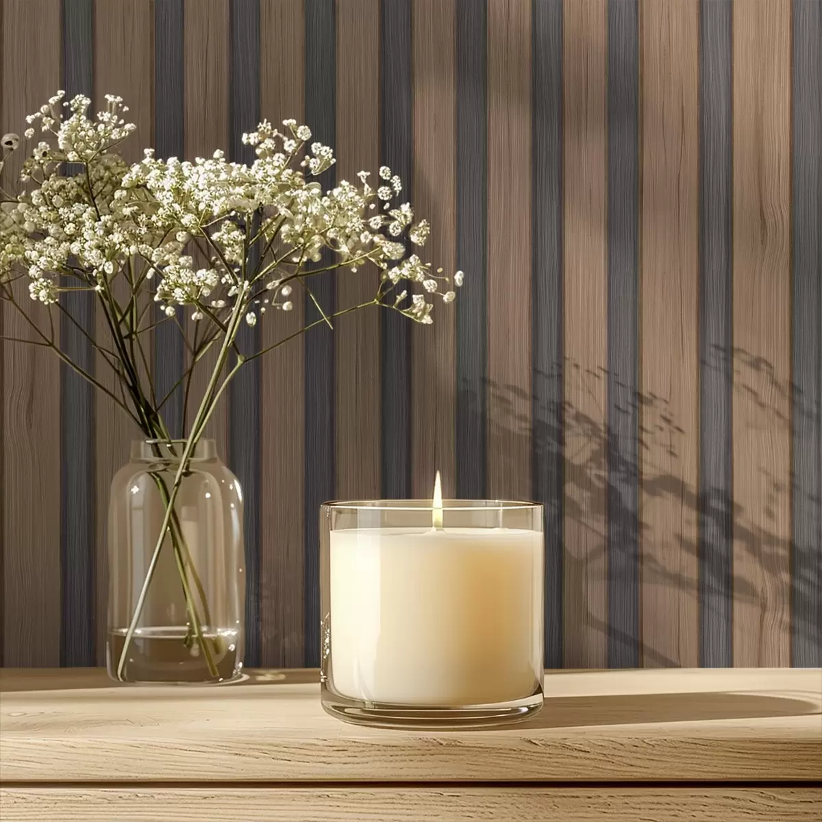 Ταπετσαρία Κάθετες ξύλινες λάμες με σκούρα γκρι ένθετα Nr. a00991