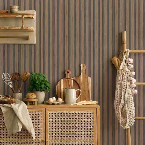 Ταπετσαρία Κάθετες ξύλινες λάμες με σκούρα γκρι ένθετα Nr. a00991