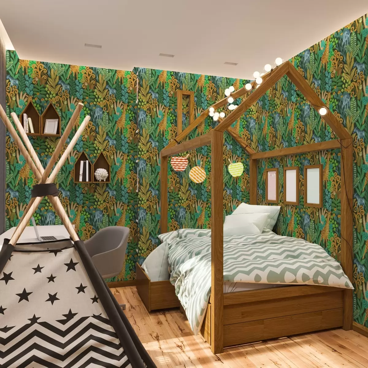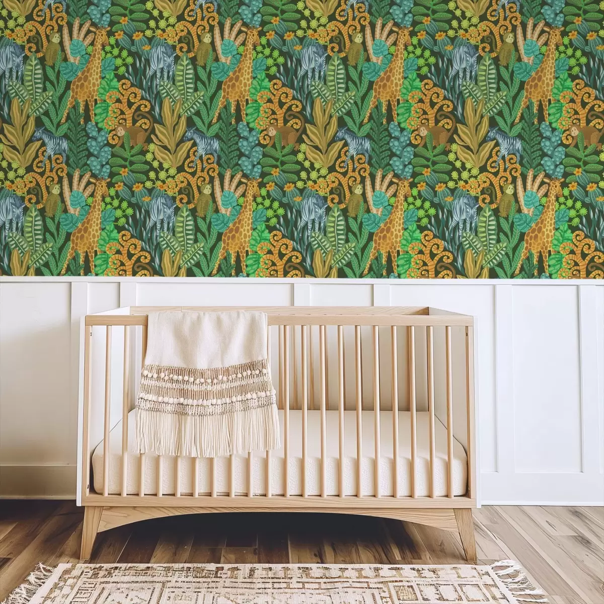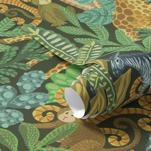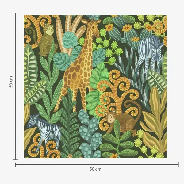 Ταπετσαρία Πυκνή ζούγκλα με ζώα σε σκούρο πράσινο φόντο Nr. a01000v2