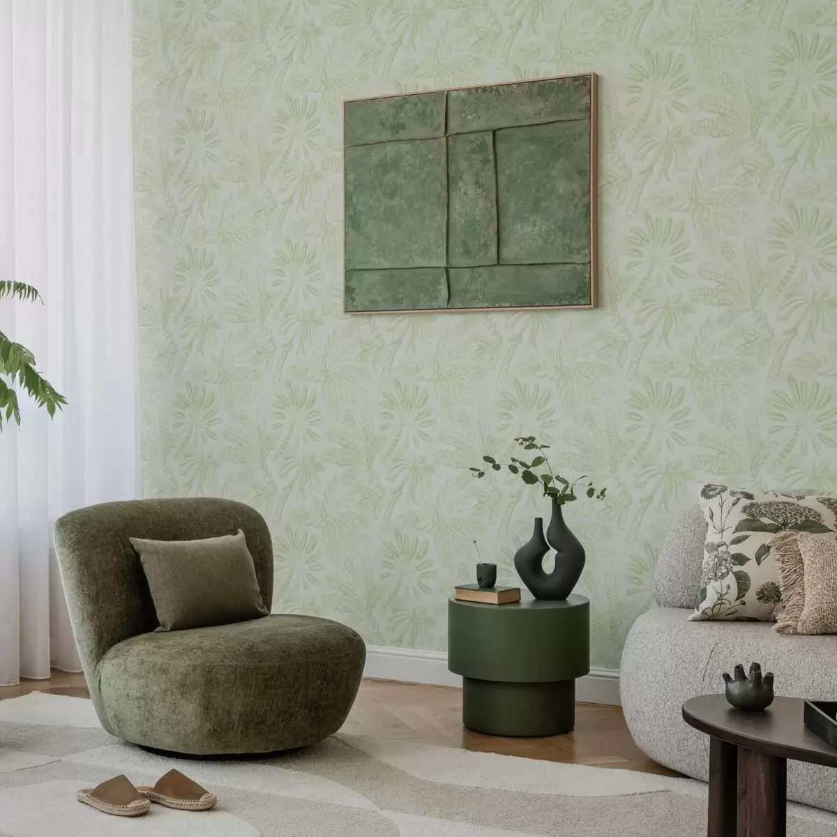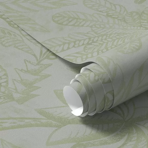 Ταπετσαρία Σκίτσα τροπικών φύλλων σε φρέσκους ανοιχτό πράσινους τόνους Nr. a01001v1