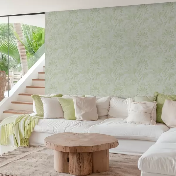 Ταπετσαρία Σκίτσα τροπικών φύλλων σε φρέσκους ανοιχτό πράσινους τόνους Nr. a01001v1