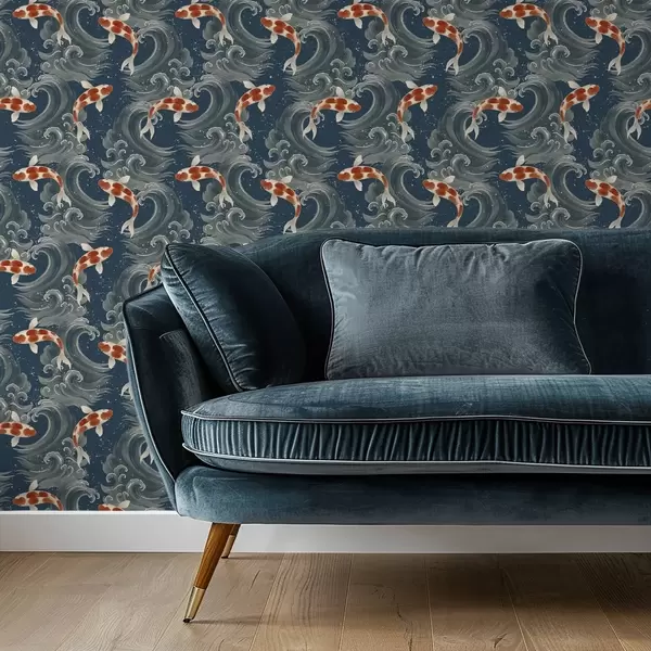 Ταπετσαρία Κοί ψάρια κολυμπούν ανάμεσα σε δραματικά κύματα του ωκεανού Nr. a01019