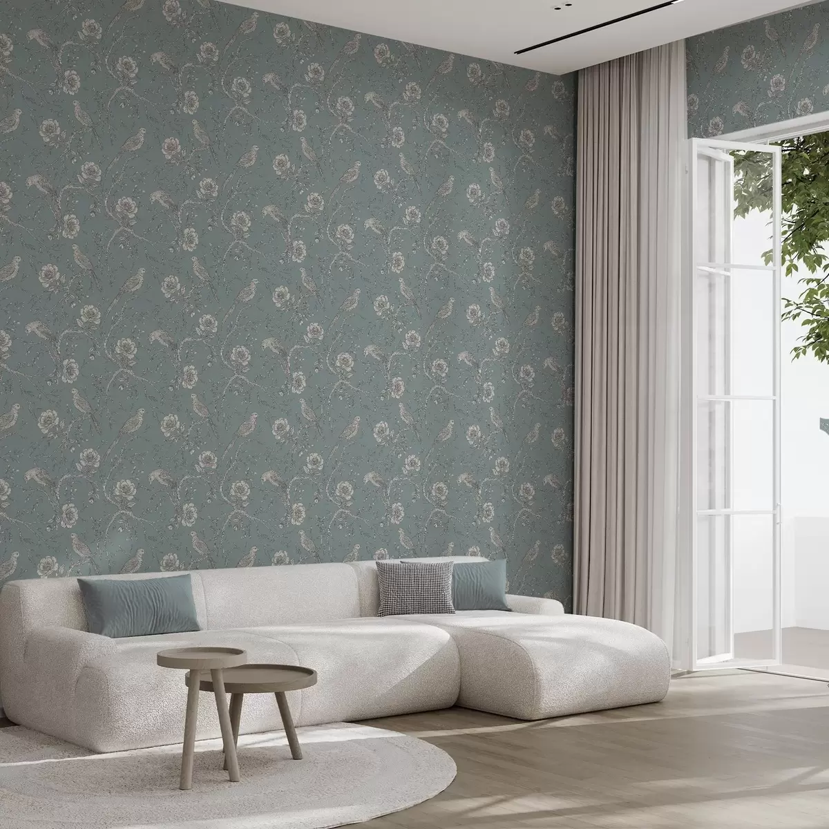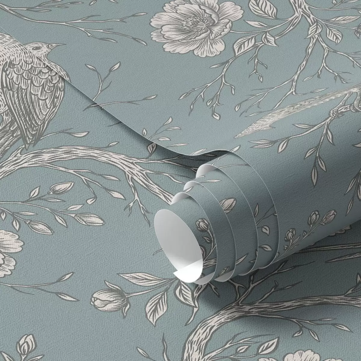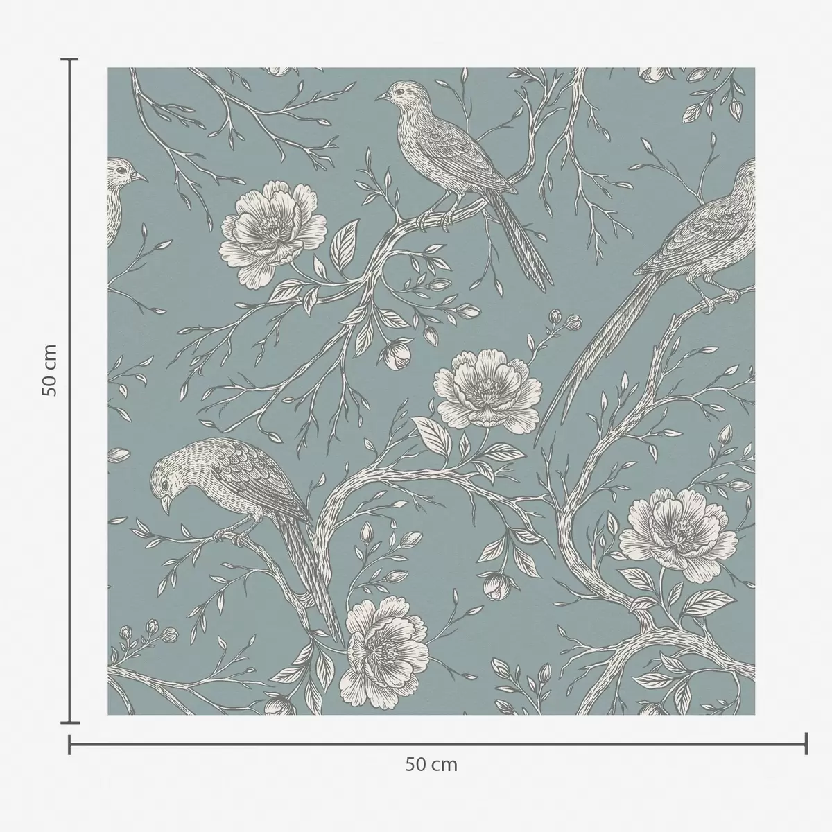 Ταπετσαρία Πουλιά με περίγραμμα σε κλαδιά, απαλό μπλε φόντο Nr. a01022