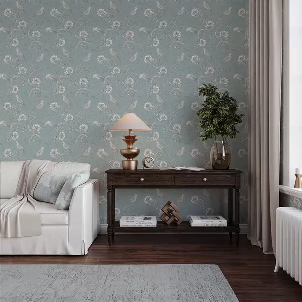 Ταπετσαρία Πουλιά με περίγραμμα σε κλαδιά, απαλό μπλε φόντο Nr. a01022
