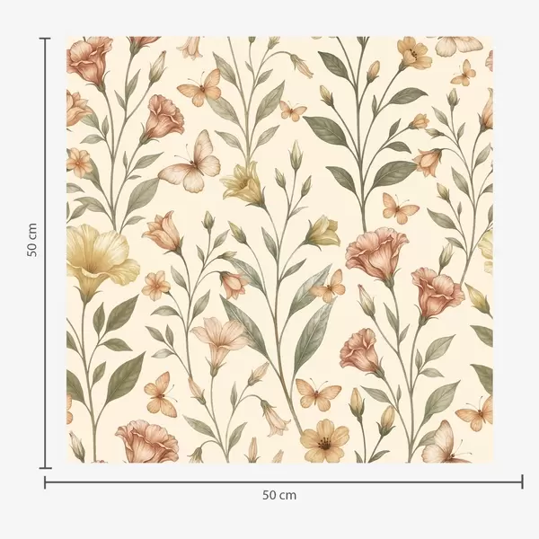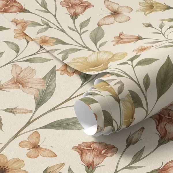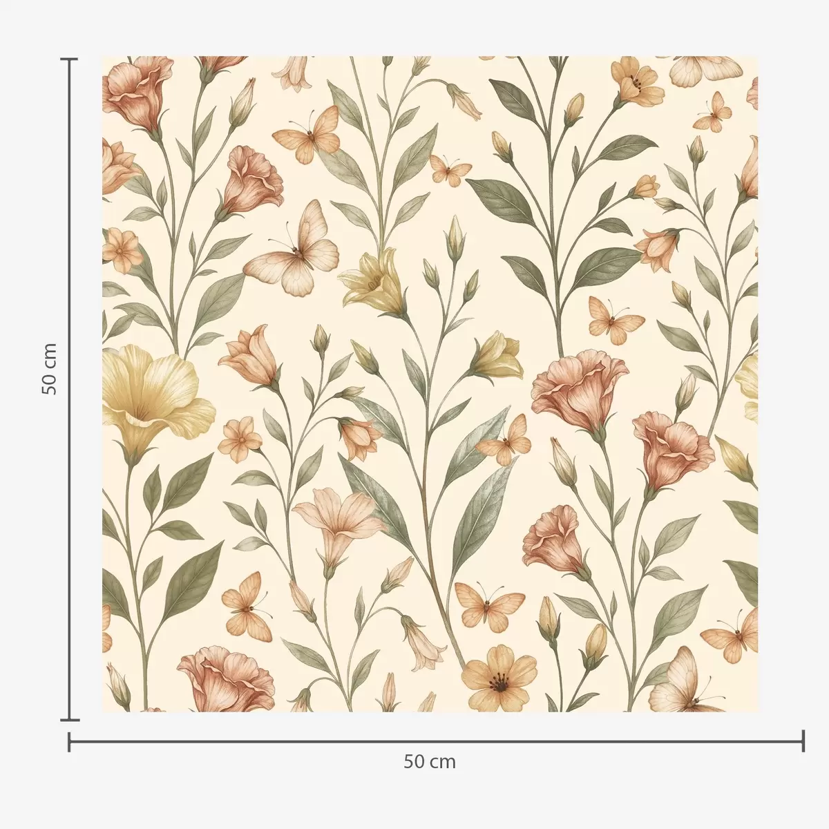 Ταπετσαρία Λεπτά άνθη ροδακινιάς και πεταλούδες σε ζεστό κρεμ φόντο Nr. a01026