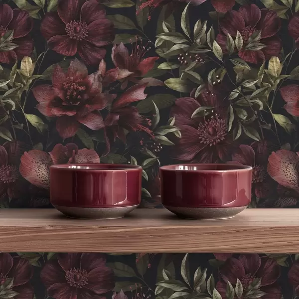 Ταπετσαρία Πλούσια μπορντό λουλούδια σε σκούρο φόντο Nr. a01032