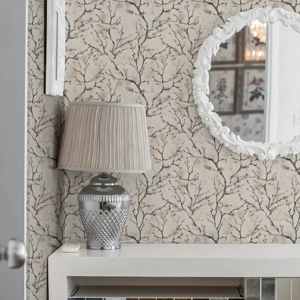 Ταπετσαρία Ακουαρέλα με κλαδιά σακούρα σε ανοιχτόχρωμο φόντο Nr. a01033