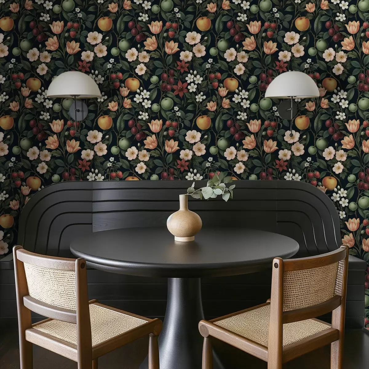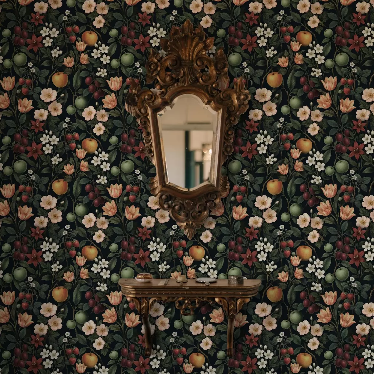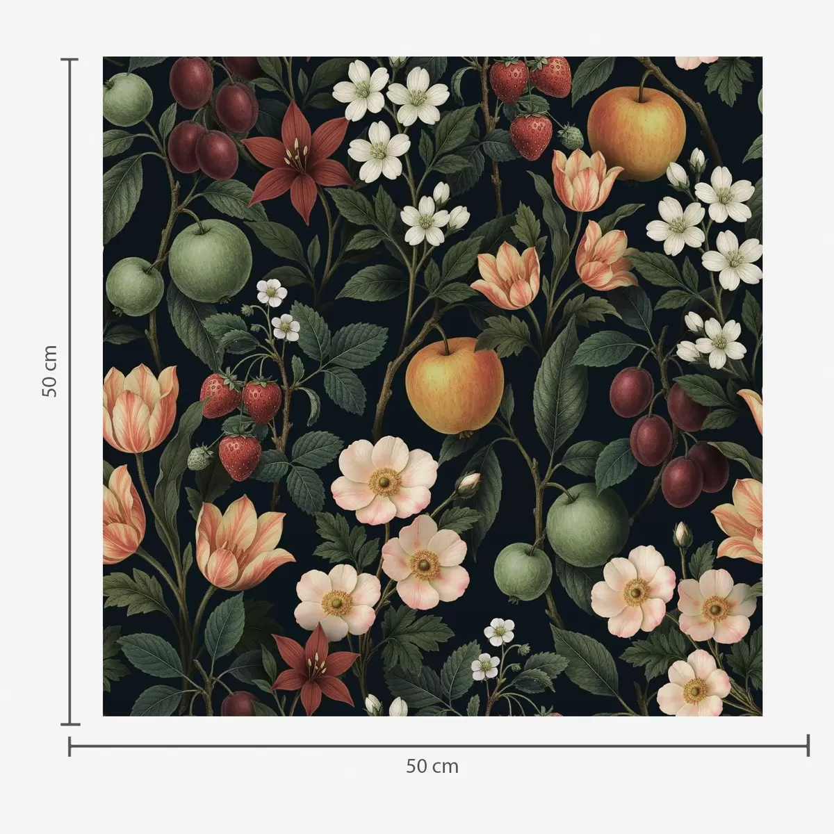 Ταπετσαρία Σκοτεινός κήπος με λουλούδια, ώριμα μήλα και μούρα Nr. a01034