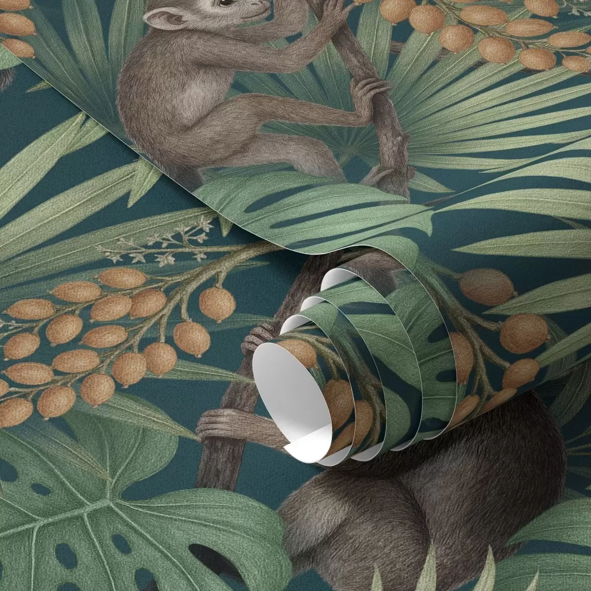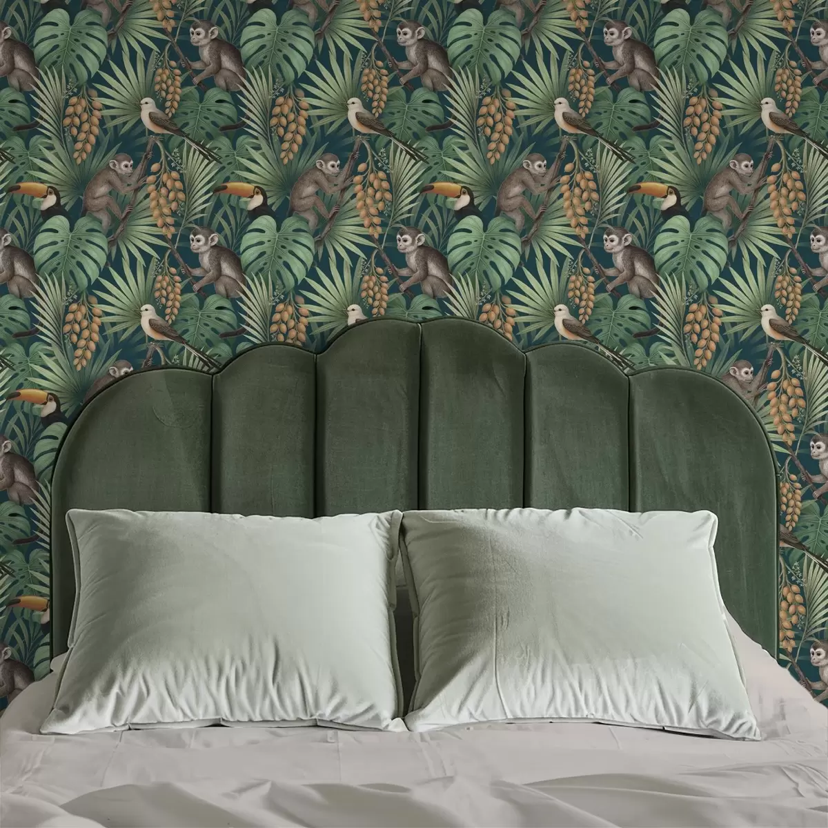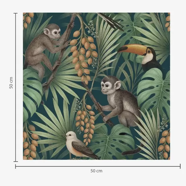 Ταπετσαρία Πίθηκοι και τροπικά πουλιά στο πυκνό φύλλωμα της ζούγκλας Nr. a01037