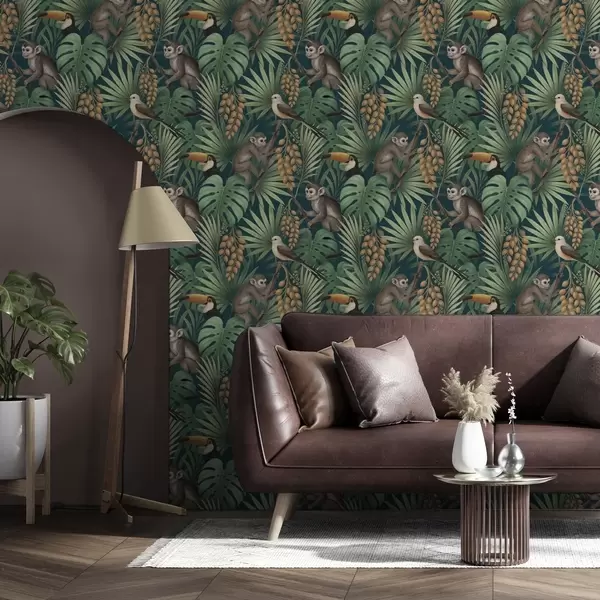 Ταπετσαρία Πίθηκοι και τροπικά πουλιά στο πυκνό φύλλωμα της ζούγκλας Nr. a01037