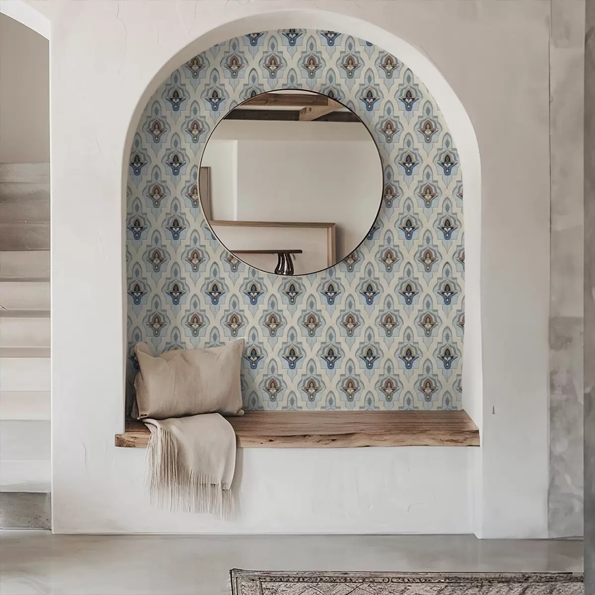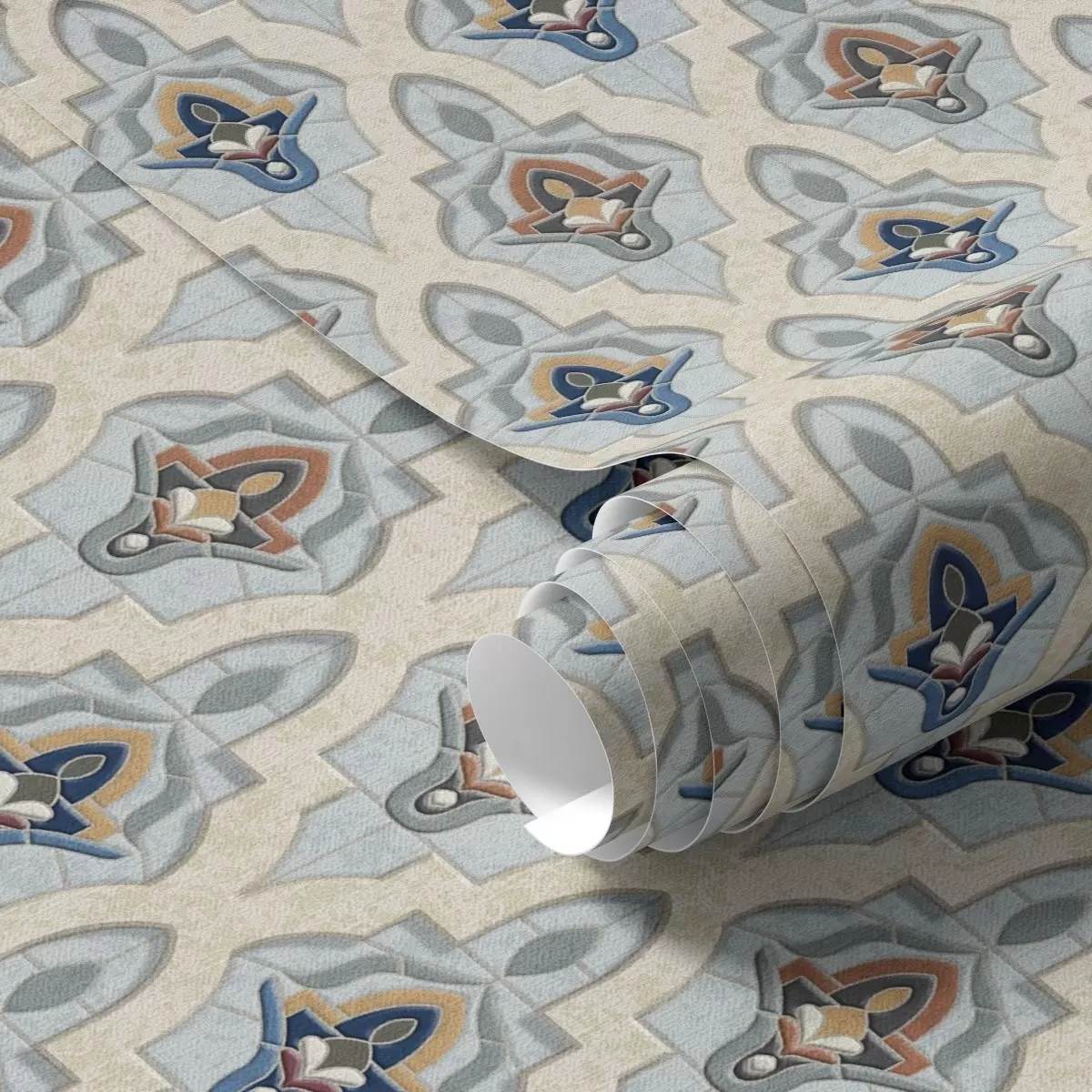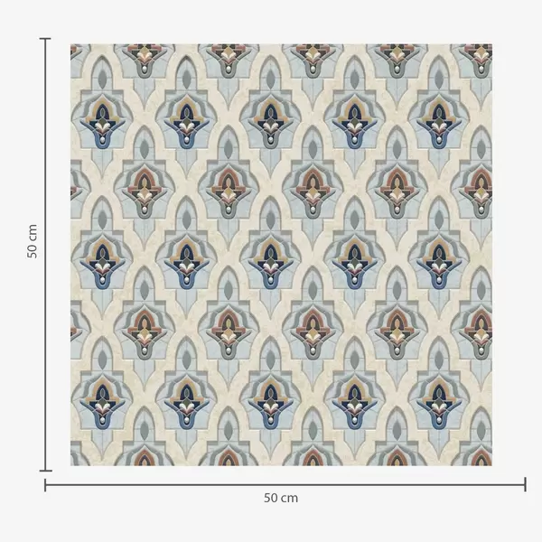 Ταπετσαρία Ανατολίτικο μοτίβο από μικρά πλακάκια σε μπλε-άμμο παλέτα Nr. a01044