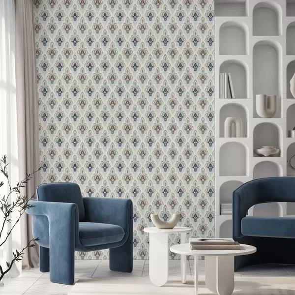 Ταπετσαρία Ανατολίτικο μοτίβο από μικρά πλακάκια σε μπλε-άμμο παλέτα Nr. a01044