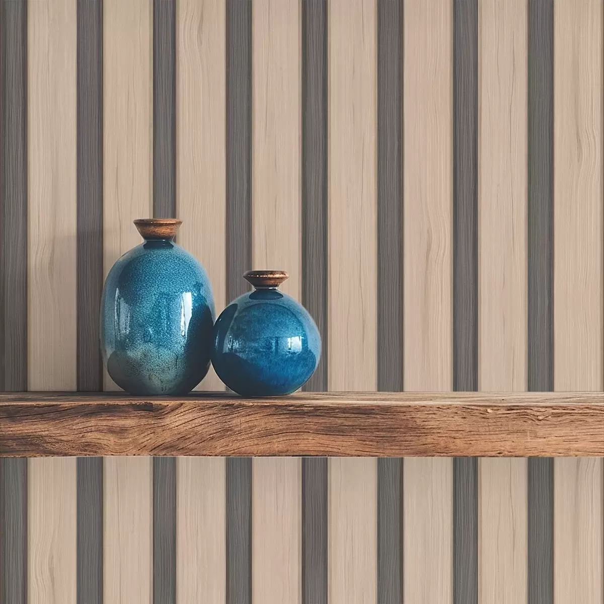 Ταπετσαρία Μπεζ ξύλινες σανίδες με σκούρες κάθετες ρίγες Nr. a01054v2