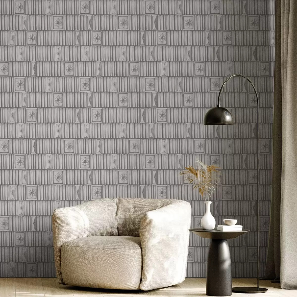 Ταπετσαρία Κυρτά κάθετα πάνελ με γραφικά floral ένθετα Nr. a01058
