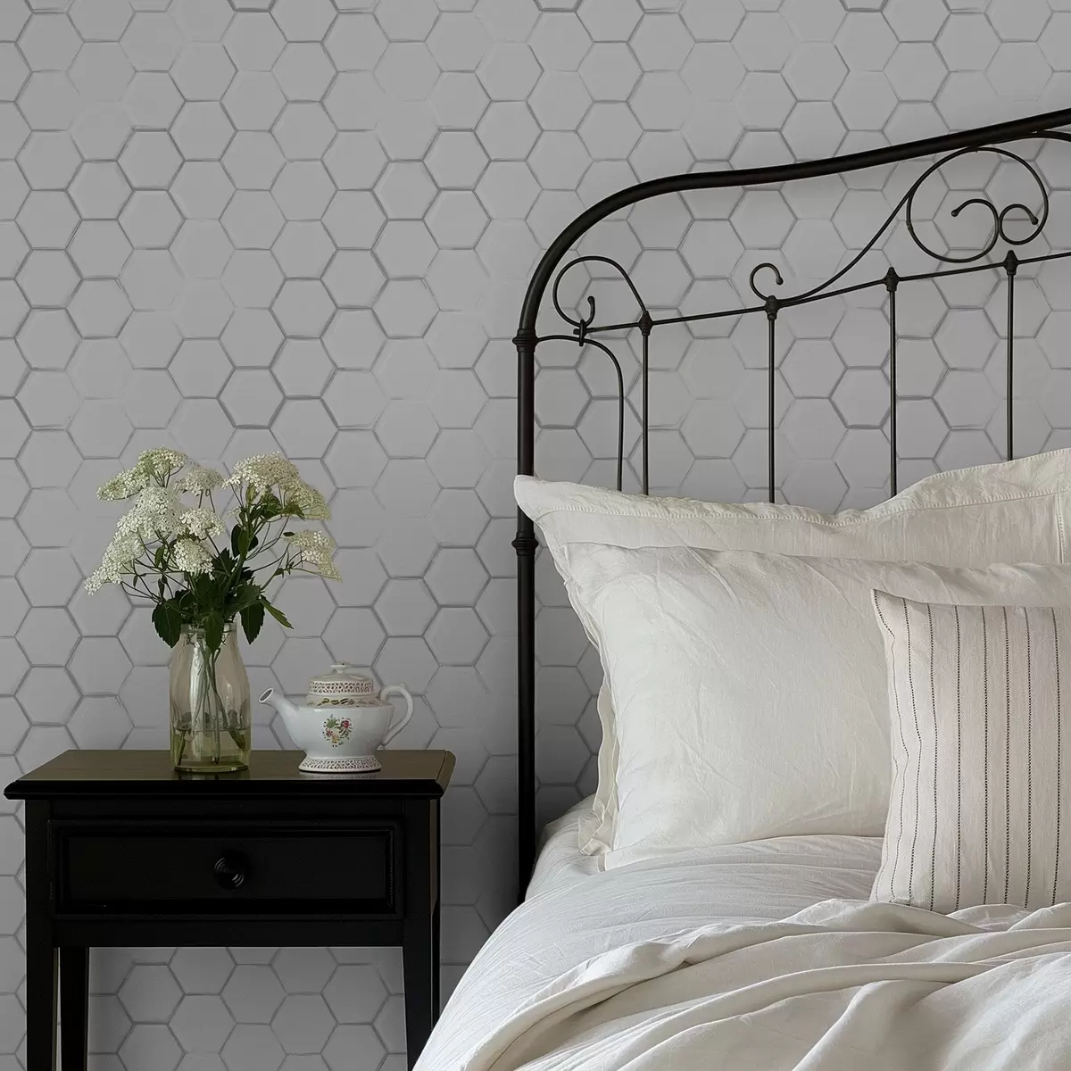 Ταπετσαρία Λευκά τρισδιάστατα εξάγωνα σε ομαλό φόντο Nr. a01059