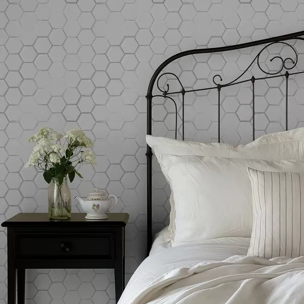 Ταπετσαρία Λευκά τρισδιάστατα εξάγωνα σε ομαλό φόντο Nr. a01059